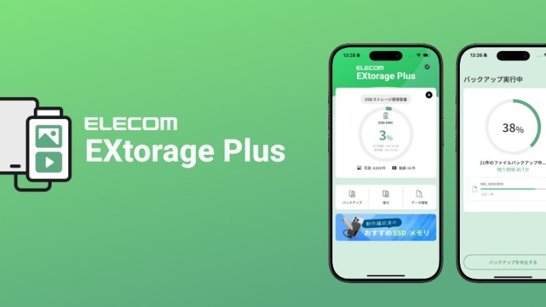 エレコム、iPhoneやiPadに保存された写真や動画を接続したストレージへバックアップできるアプリケーション「ELECOM EXtorage Plus」をリリース