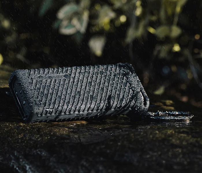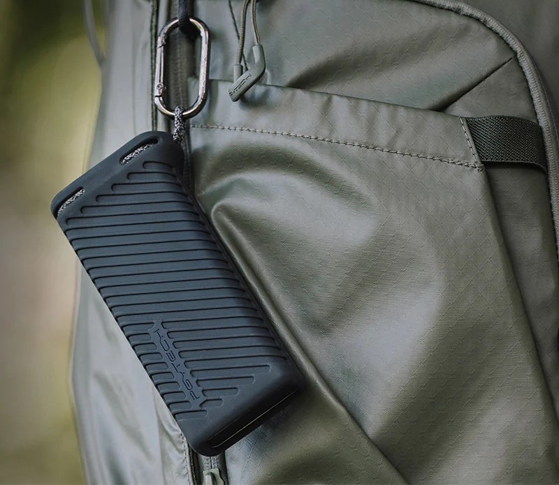 IP54の防塵・防滴性能、圧縮や曲げに強いアルミニウム合金ハウジング、落下衝撃を緩和するシリコン外装の三重構造でカードを保護する。