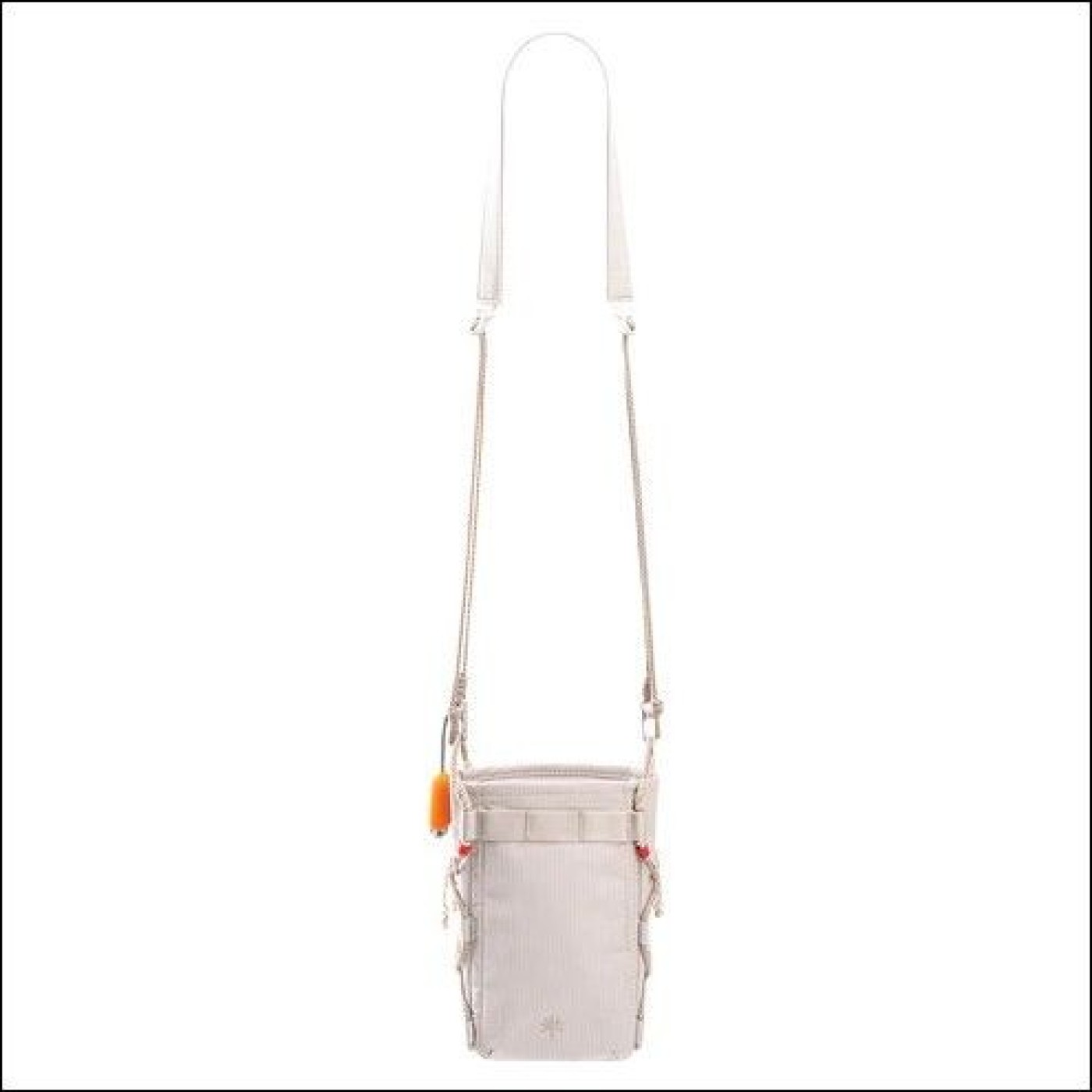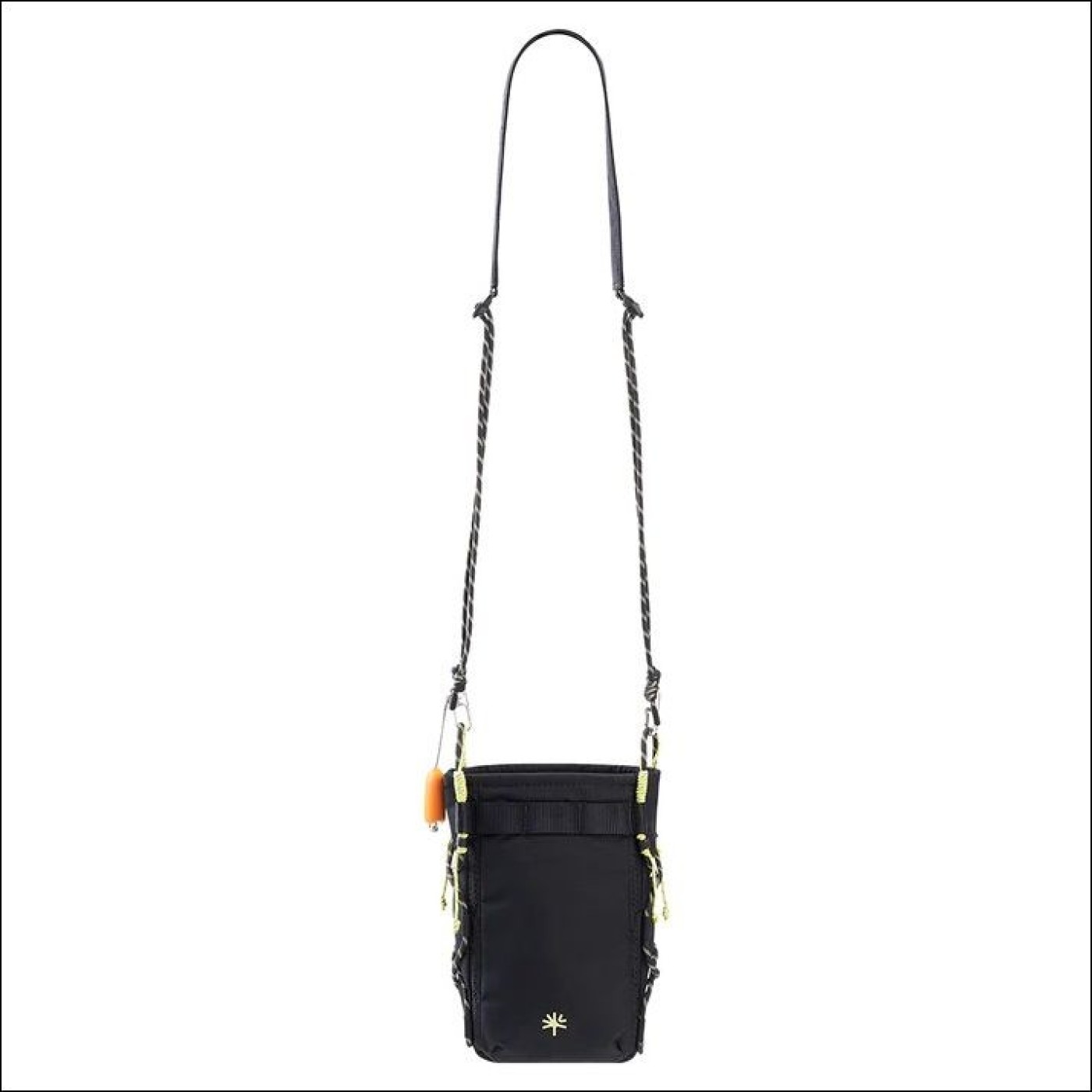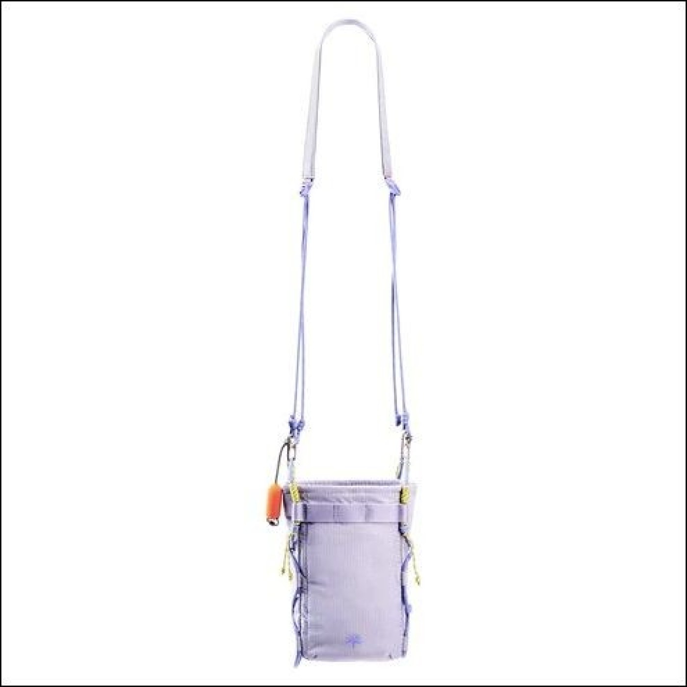 ドローストリング仕様によりスムーズに開閉できるカジュアルな縦型デザイン。スマートフォンやコンパクトカメラを、内部の仕切りできれいに整理できる。重量はわずか120gで、身軽に持ち運びできる。撥水性のある生地は伸縮性に優れ、引き裂きや擦り傷にも強く、アウトドアでも安心して使用できる。