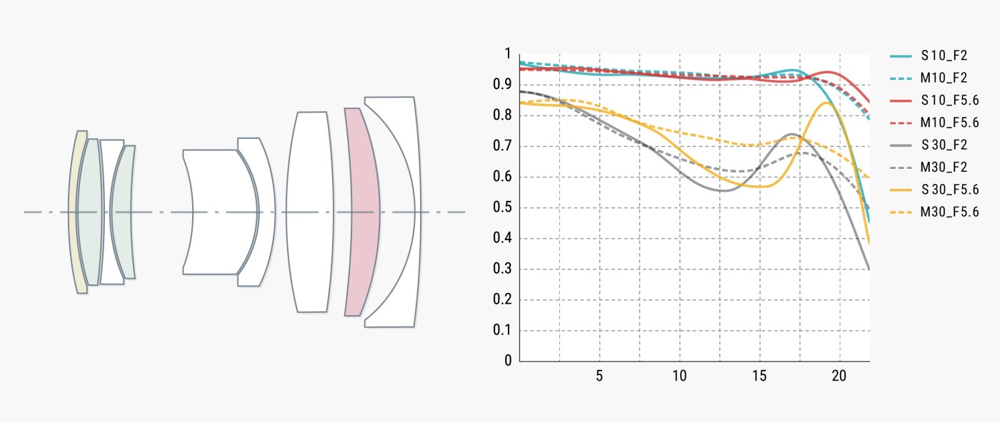 ASPH非球面レンズ1枚、EDレンズ1枚、高屈折レンズ2枚の特殊レンズ構成により、各種収差を効果的に抑制し、鮮明さを維持する。