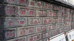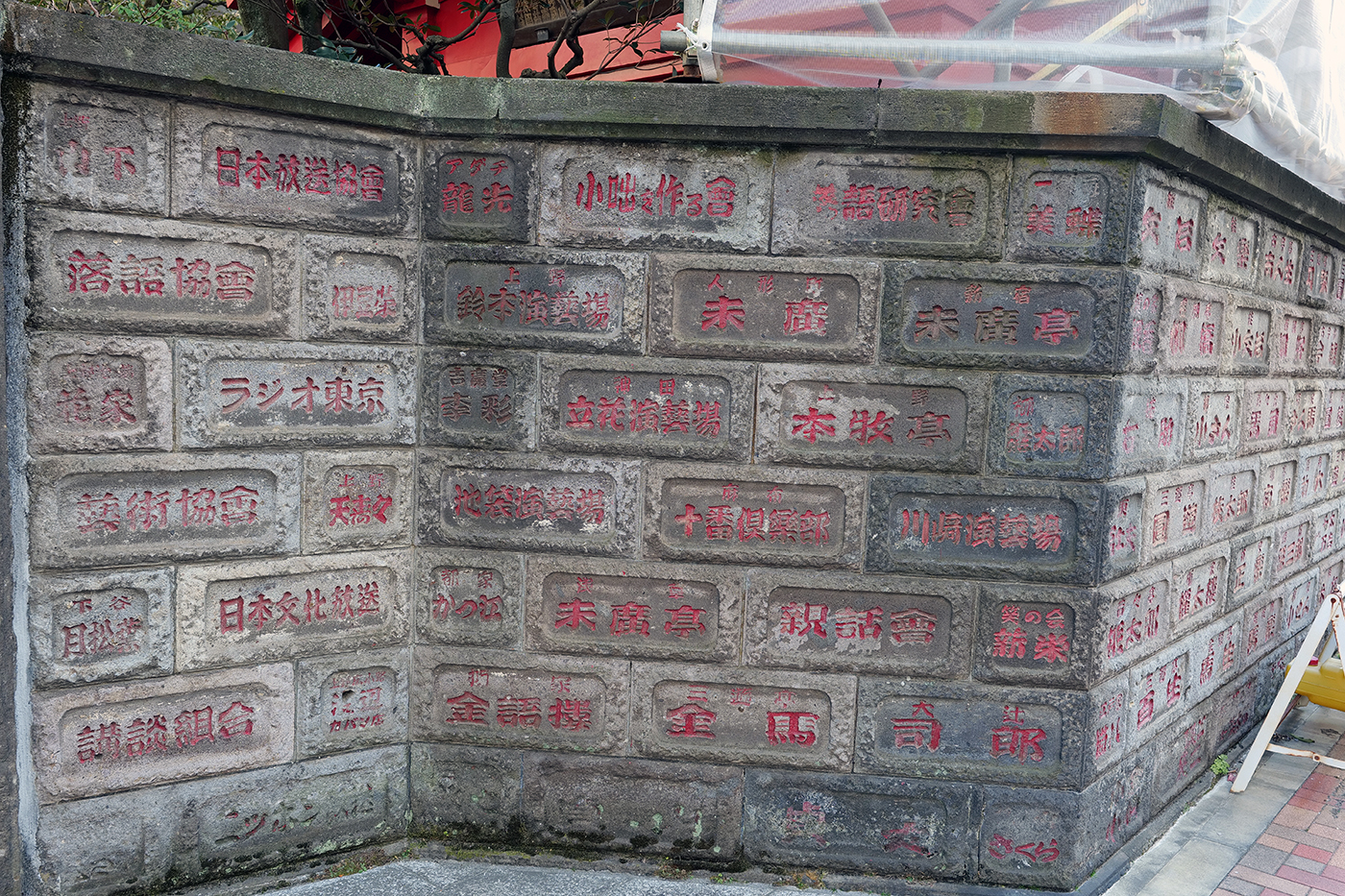 あれっこのお寺の壁、こりゃなんだい。噺家の名前や寄席の名前、はたまた放送局の名前まである(⑩)。