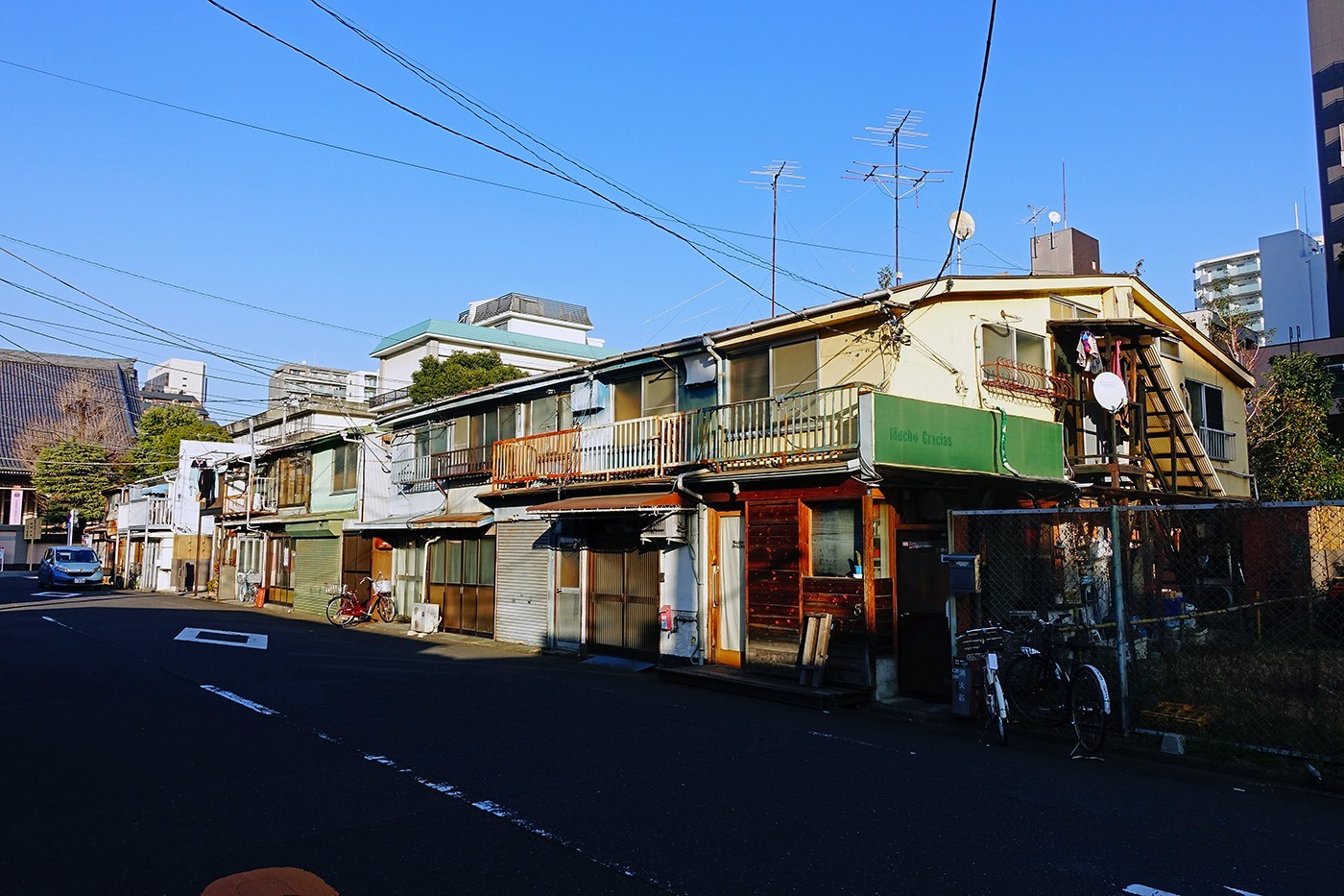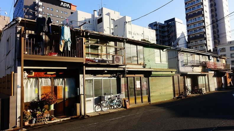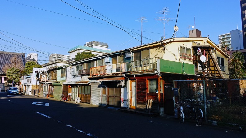 しかし前述のように、この辺り戦災を受けなかったのであろう、旧(ふる)い建物が点在している。そうだ、あの長屋はどうなっているだろうか?