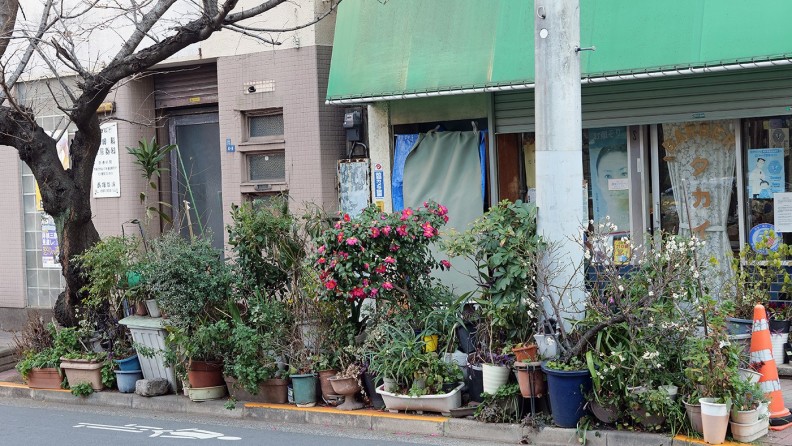 前回、前々回も書いたが、庭を持たない下町の人たち、植木鉢を家の前に置いて愛でている(⑧⑨)。