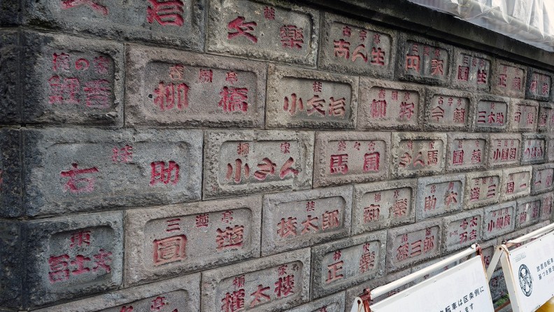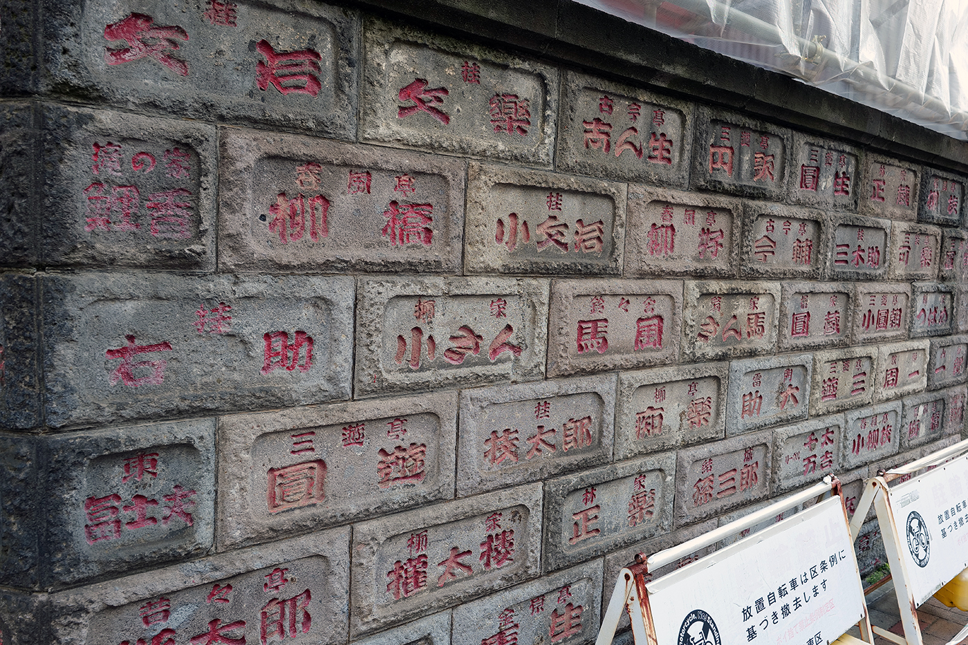 とまあ、今回の遠ざかるもの探しはこれで終わり、電車に揺られて帰ることに。しかしあの噺家や寄席、放送局の名前が刻まれた壁、あれは一体なんだったんだろう? と気になって、帰りの電車の中で調べてみた。