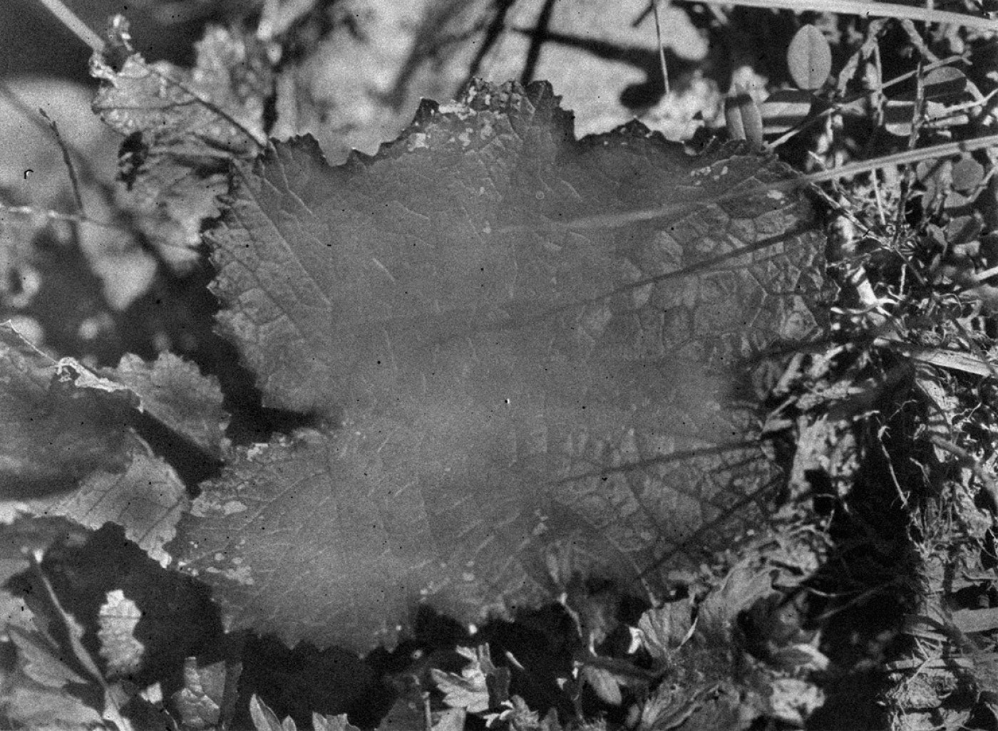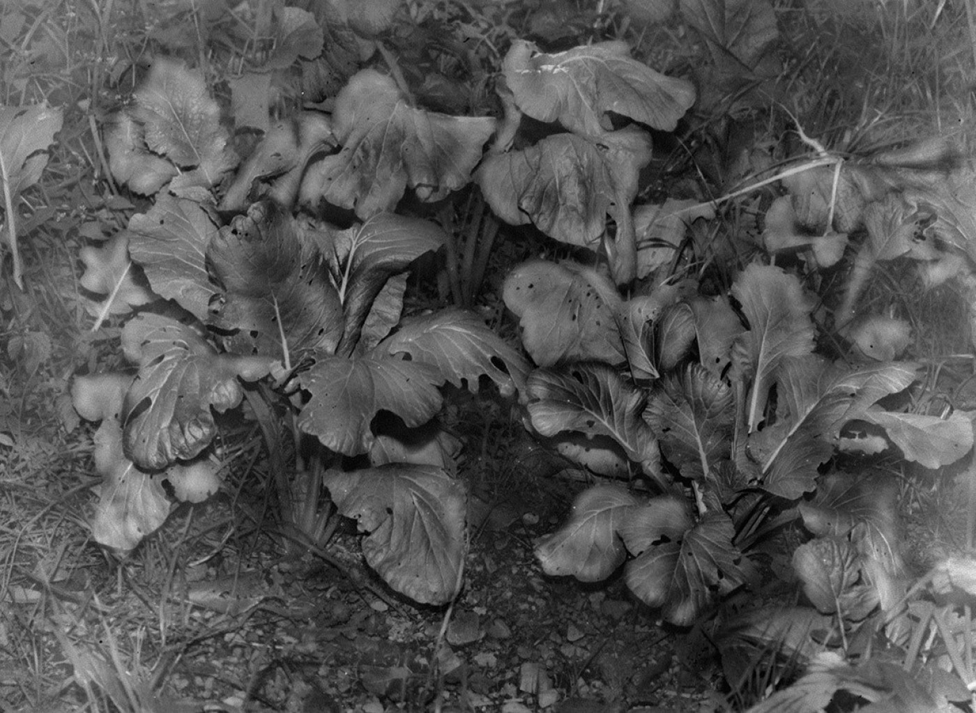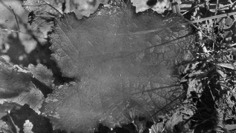 本展示も同じく多摩川中流域のシリーズから構成されているが、展示タイトル「植物、暗室」が示すように、作家独自の暗室ワークを通して焼き付けられた植物の写真作品が並ぶ。
