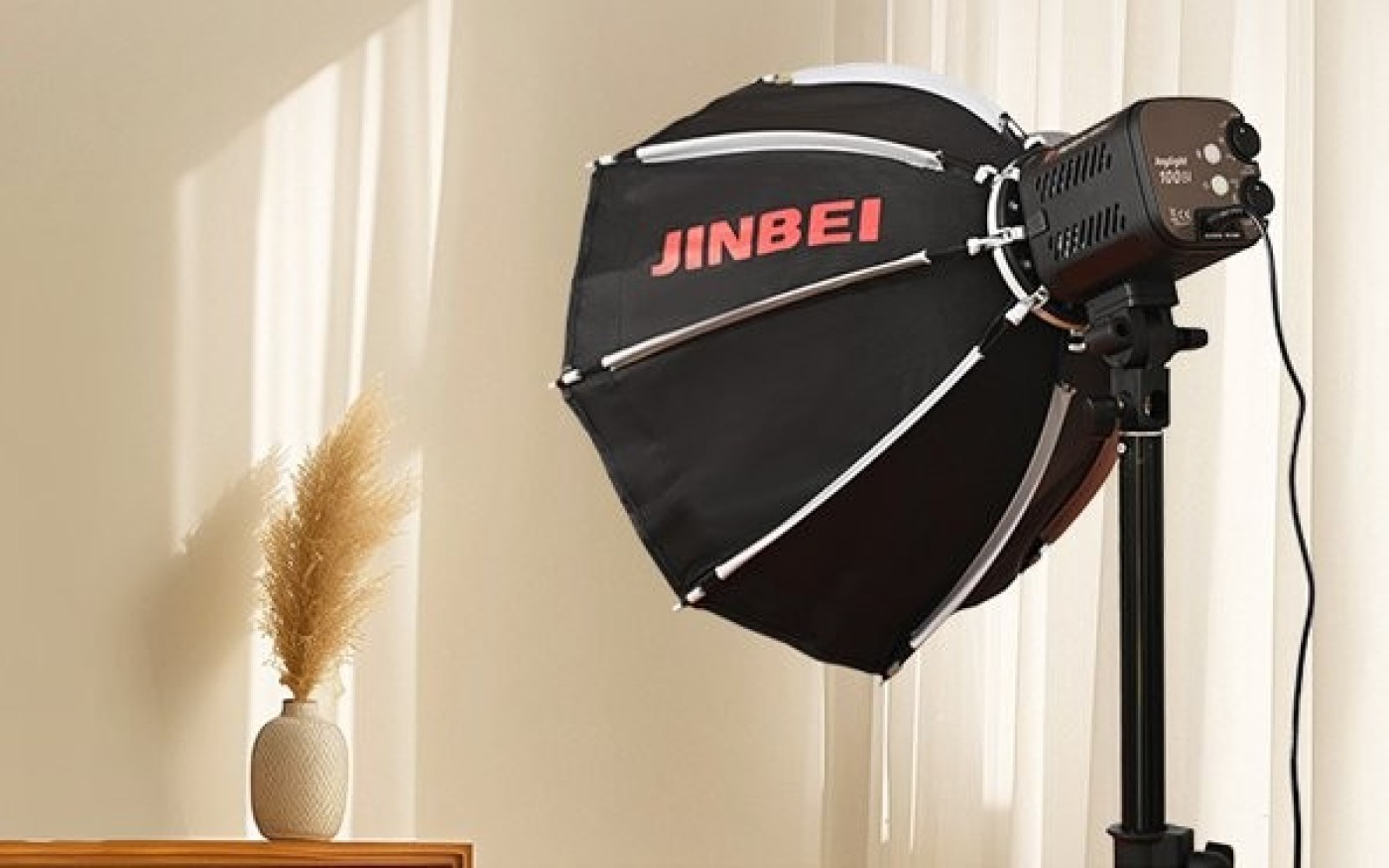 付属のリフレクターを取り付ける部分は4c(4つ爪)タイプで、しっかり固定することができるのでハードな撮影でも安心。そのほかにも、より照射角度が広角になるリフレクターや、円柱型のスポットアタッチメント、ソフトボックスなど、直接取り付けが可能な4c(4つ爪)タイプの別売アクセサリーを豊富に取り揃えた。さらに、4c(4つ爪)マウントを汎用性の高いBowensマウントへ変換できる4c Bowensアダプター(型番:J429)も別途用意しており、手持ちのBowensマウントアクセサリーと合わせての使用も可能。