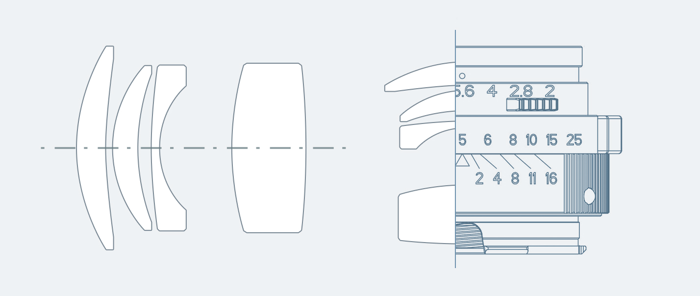 軍用ライカ向けに少数生産された非常に希少なレンズである「50mm F2」のオリジナルの光学性能を再現するため、張り合わせのない4群4枚(4枚玉)のレンズ構成を採用。絞りの操作に対する画質の変化が大きく、絞り開放時に滲みをわずかに伴うボケ味と、絞り込んだ時のシャープネスを両方楽しみながら撮影することができる。また、無骨で存在感のある外観や、オリジナルの特徴の一つである絞りリングの操作レバーの形状も再現している。中国の投資家である周氏による復刻レンズプロジェクト第2弾で、前作「M35mm f/2」と同様、その精巧な作りと再現性の高さから「周エルカン」の愛称で愛好家に親しまれている。