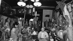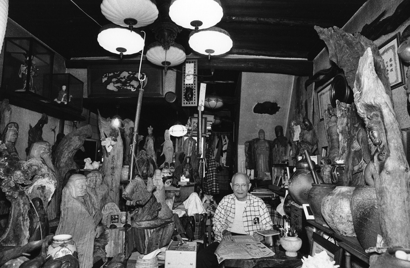 元田は「いつも静かに存在を消すようにじっと」しながら、この街で心を動かされた瞬間にシャッターを押していった。そこに写るのは、背に龍と虎の刺青が入った女装男性、大衆演劇の白塗り俳優、おもちゃのピストルを片手にした長髪の男性、自身の木彫り作品に囲まれた部屋に腰掛ける老人など、一筋縄では行かないこの舞台を彩る登場人物たち。また、ピンク映画館に書かれたキャッチコピー、労働者による手書き看板のアジテーションなど、街中に現れる強い言語表現も目につく。