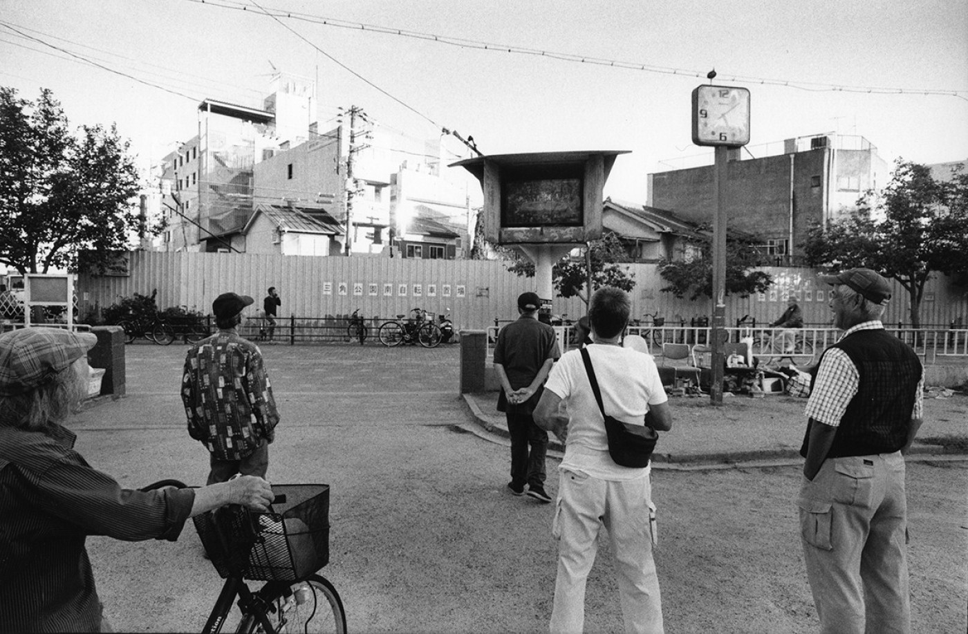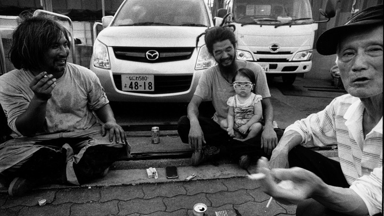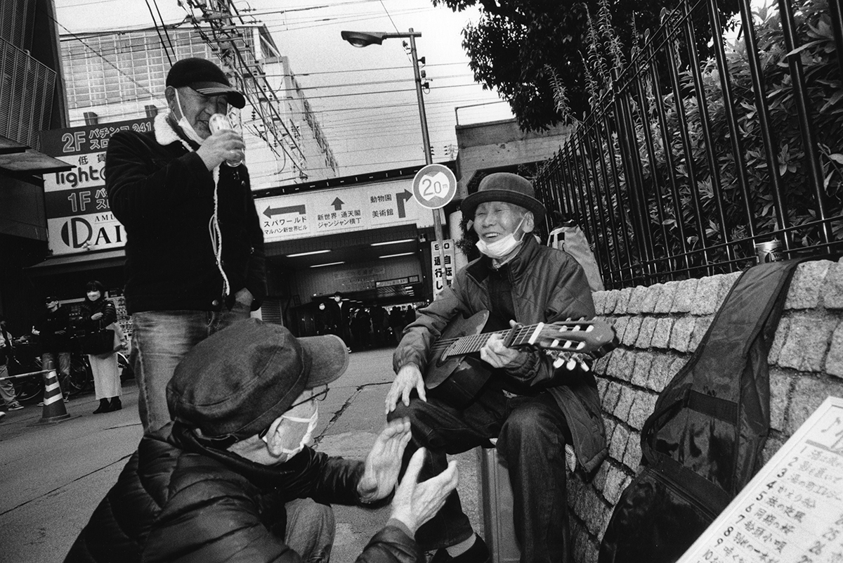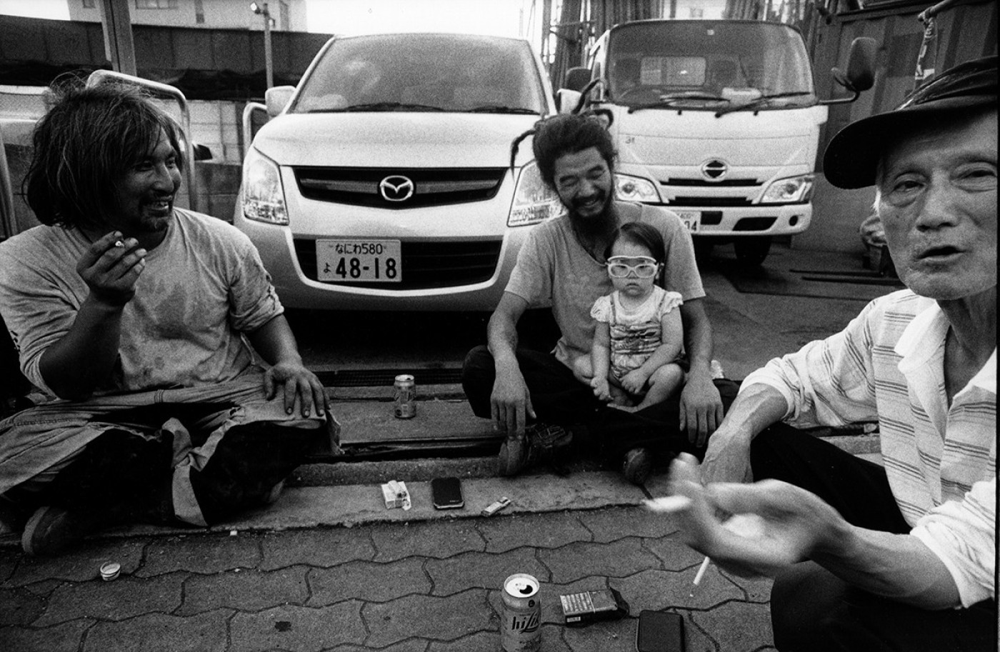 本作は、2022年から2024年まで、居住地の神奈川県から大阪に夜行バスで通いながら、「釜ヶ崎」や「あいりん地区」と呼ばれる大阪市西成区北部にある日雇い労働者の街(ドヤ街)を、モノクローム・フィルムでスナップした作品だ。