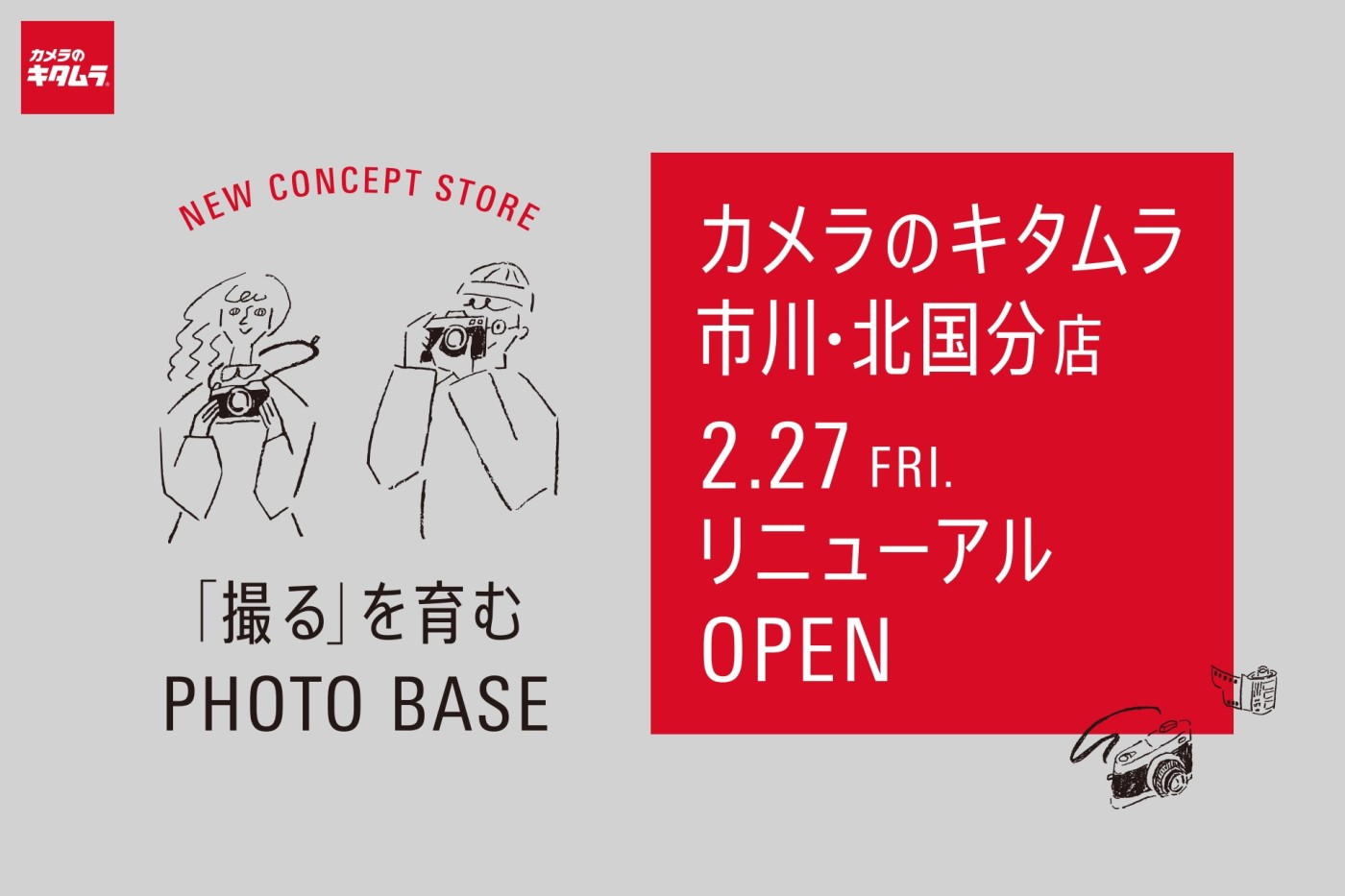 株式会社カメラのキタムラは、新コンセプトストア「撮るを育むPHOTO BASE」として、カメラのキタムラ 市川・北国分店を2026年2月27日(金)にリニューアルオープンする。千葉県内最大級の品揃えの新品カメラ・レンズに加えて、中古のカメラ・レンズも全て試すことができる。また、お客さまの写真を飾るフォトギャラリーやセルフ写真館、プロ仕様の印刷機材での写真出力など、写真に関わるさまざまな体験を楽しめるお店に生まれ変わった。