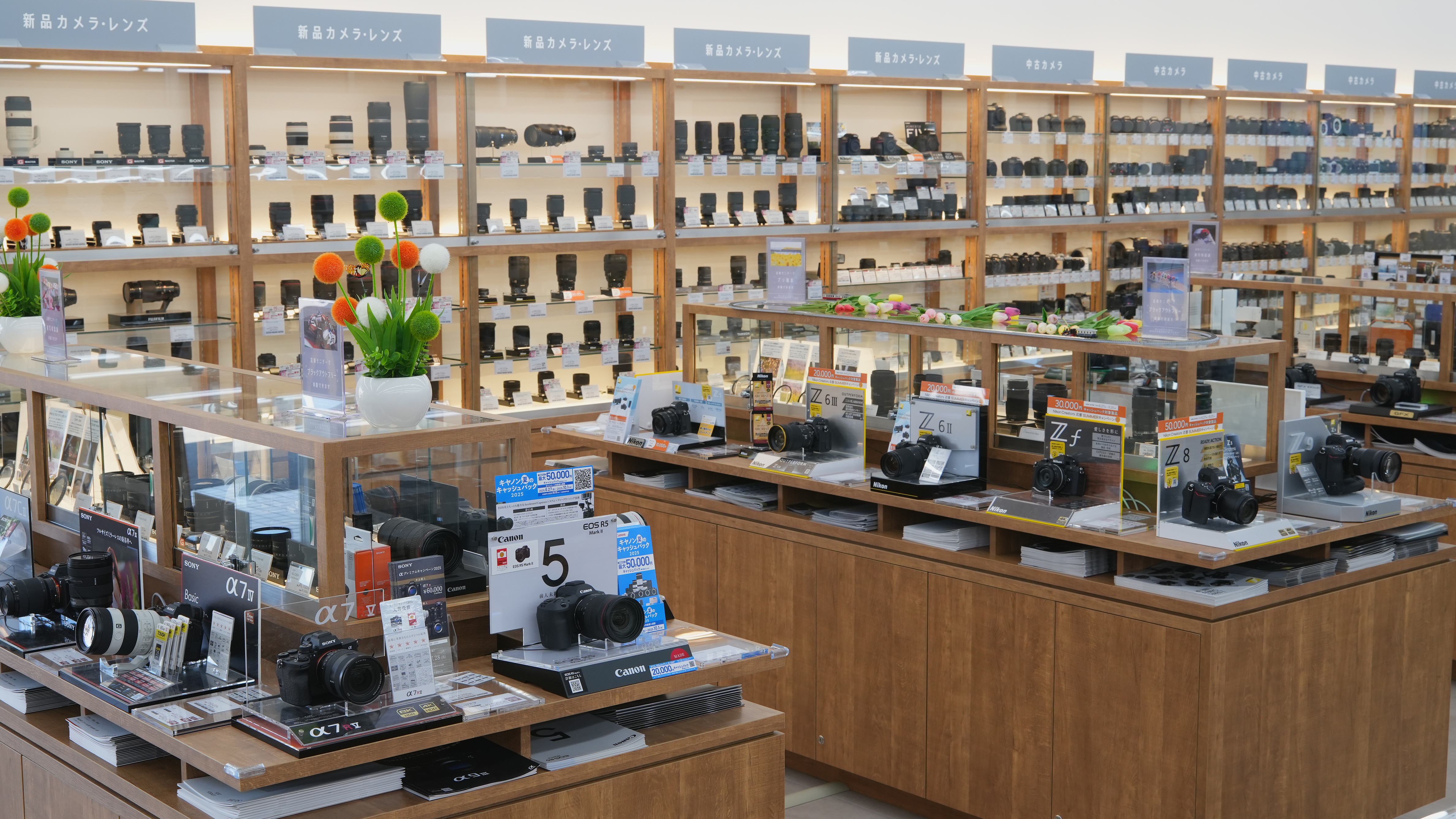 エントリーモデルからハイエンドモデルまで、幅広い種類の新品・中古のカメラやレンズを取り揃え、県内のカメラのキタムラでは最も多く品揃えを誇る。そのため、新品カメラだけでなく質の高い中古カメラ・レンズの組み合わせなど、お客さまの要望に合わせた提案も可能だ。商品を手に取ってご覧いただくことはもちろん、新設する撮影コーナーには季節で入れ替わるフラワーアーチなどを設置し、気になるカメラで撮影を体験していただくことも可能。