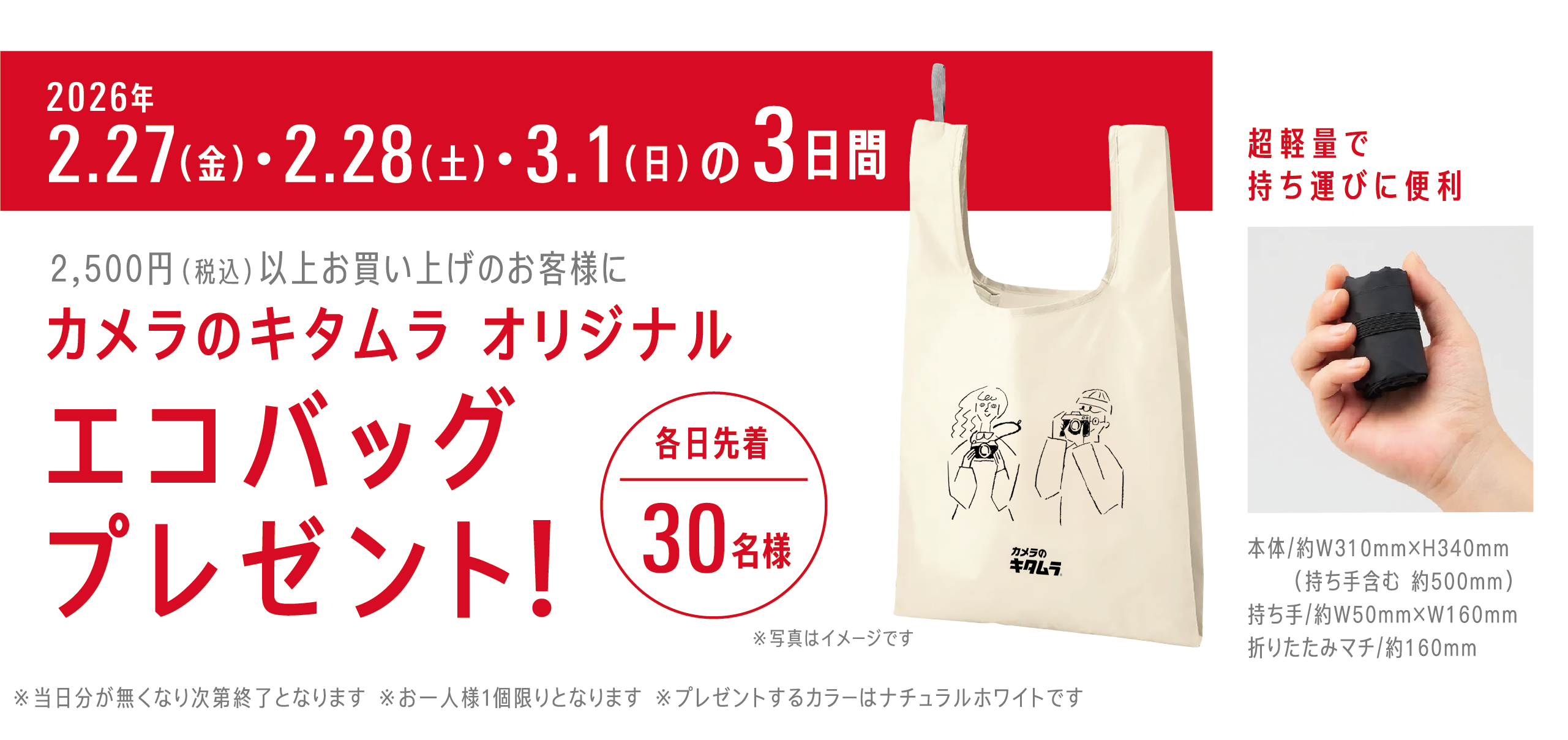 2,500円(税込)以上お買い上げのお客さまに、カメラのキタムラのオリジナルエコバッグをプレゼント!