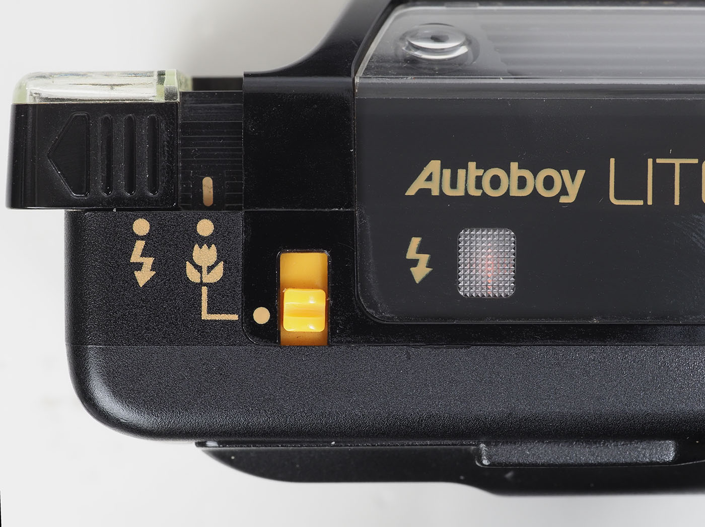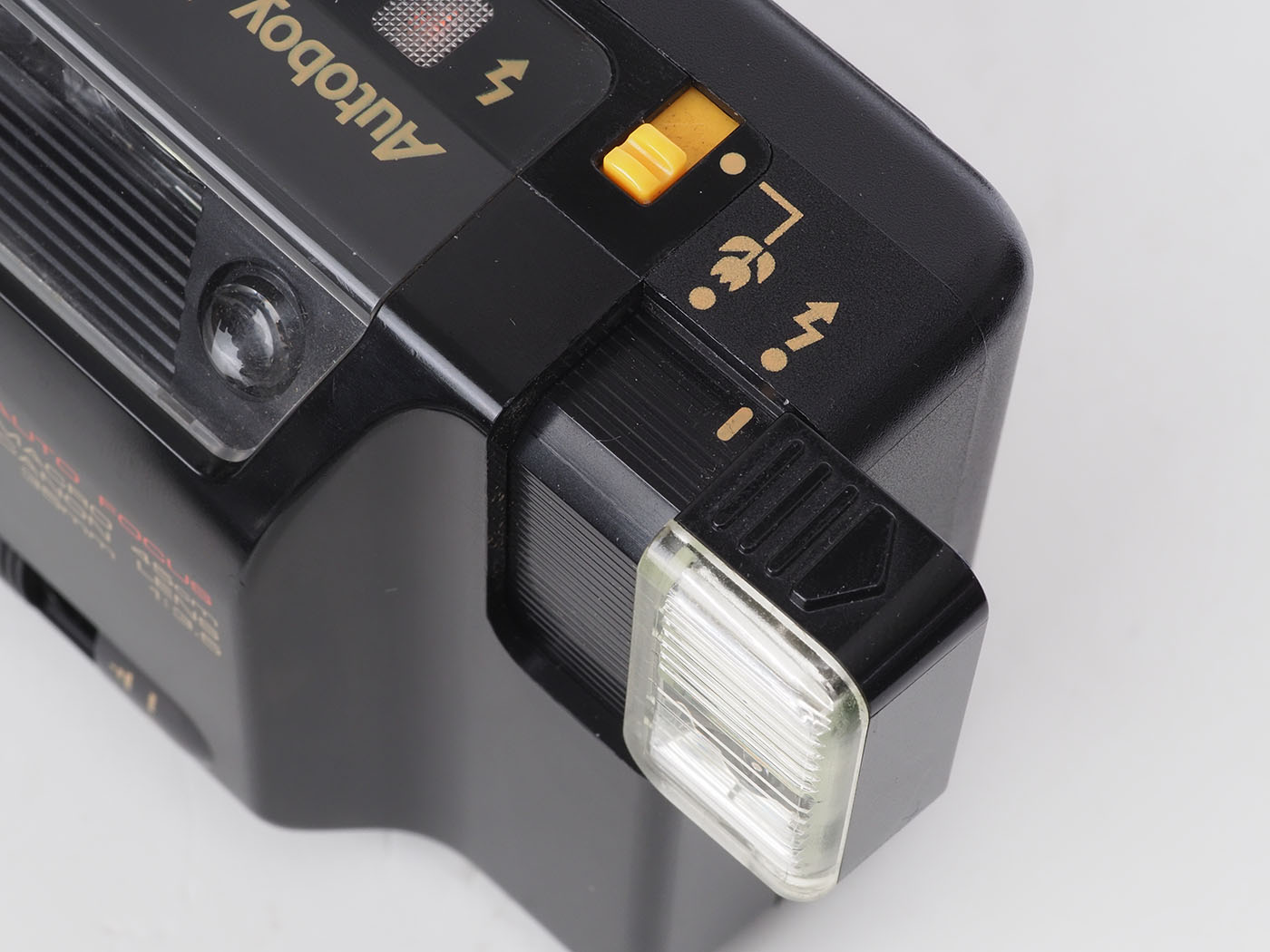 オレンジ色のレバーをマクロ位置にして発光部を出すとマクロモードに。つまり、マクロ撮影はフラッシュ撮影がマストということになります。