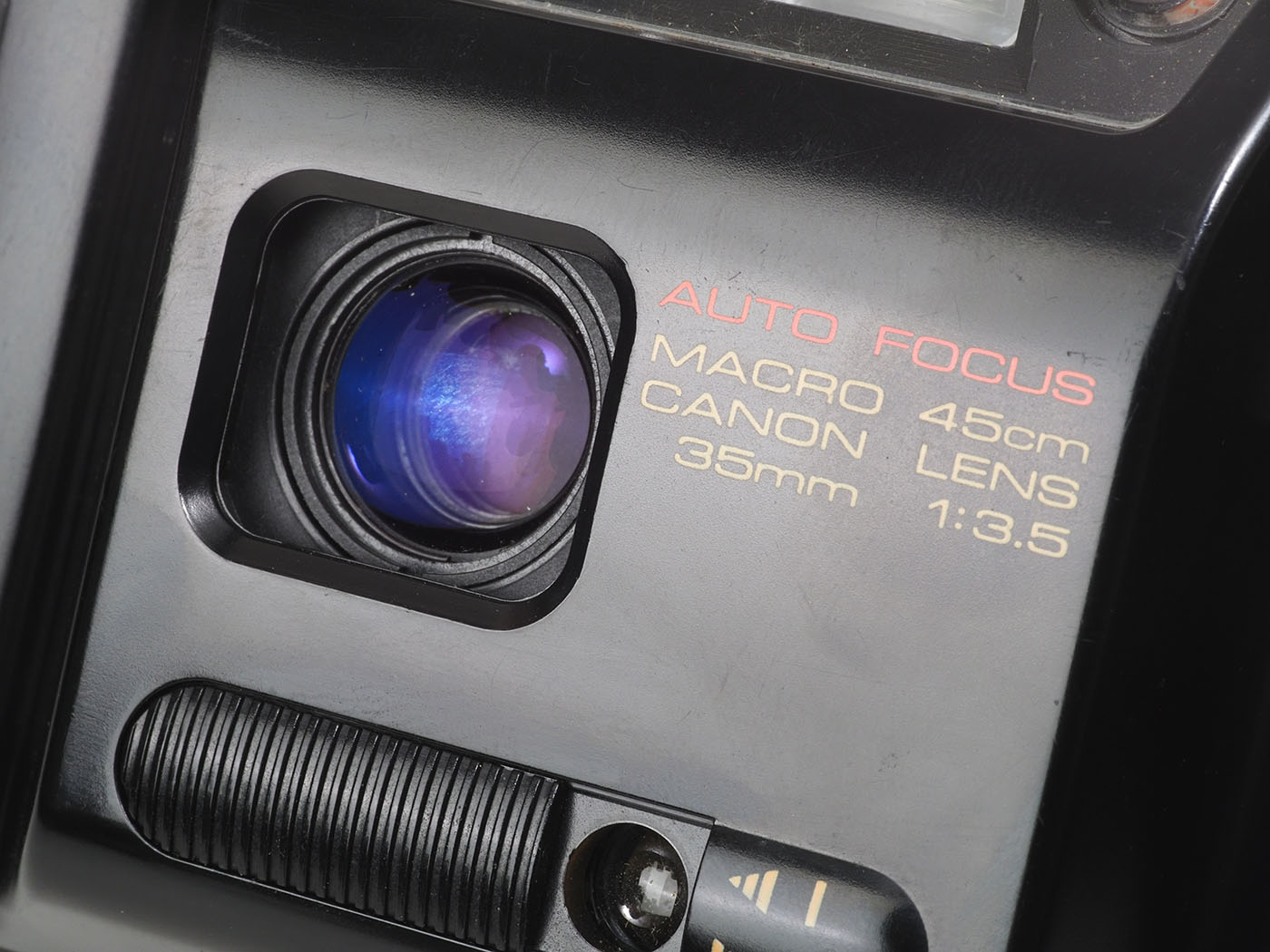 このカメラのウリは、マクロ機構がついていることであります。フラッシュ機構と連動していて、フラッシュ用の可動レバーをマクロ位置にすればセットできます。
