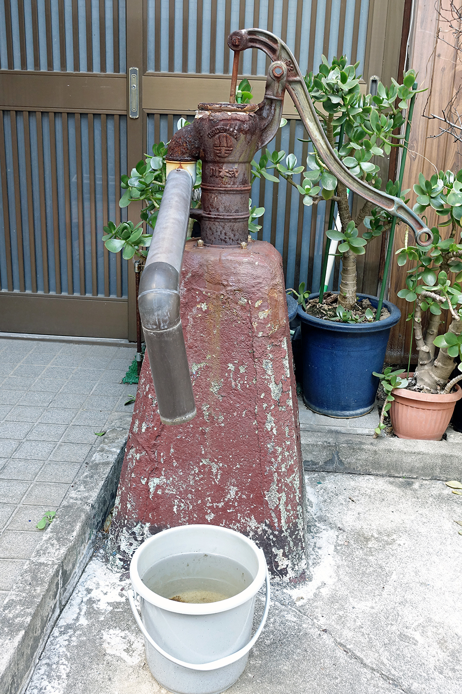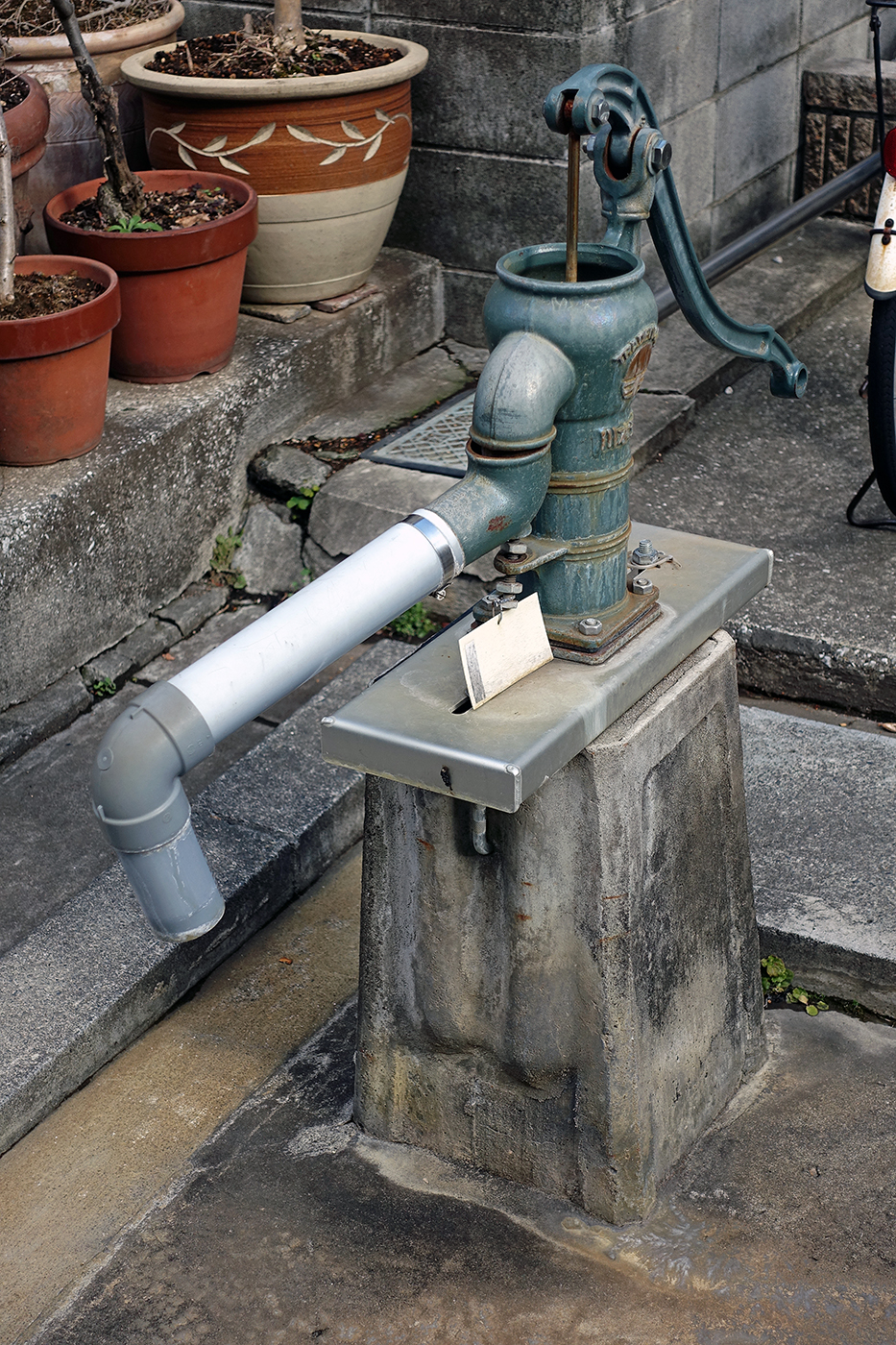 発見といえばブラブラ歩いていて、なんと懐かしい手押しポンプ(井戸用ポンプ)を発見した――しかも3カ所で見かけた(⑩⑪⑫)。