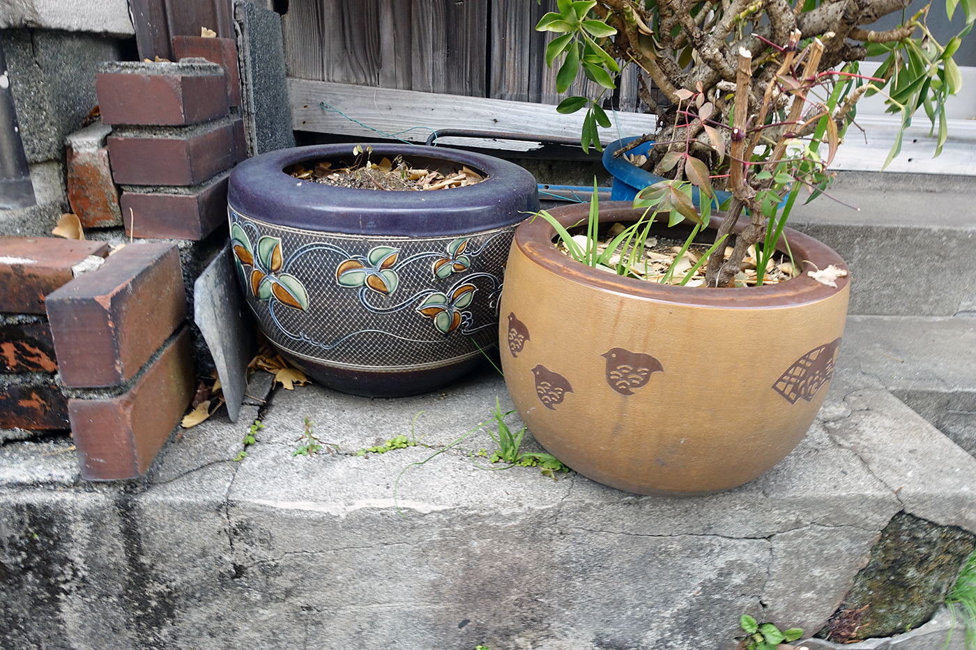 以前書いた、使い道のなくなった火鉢を植木鉢に利用しているというやつも眼に入った(⑭)。