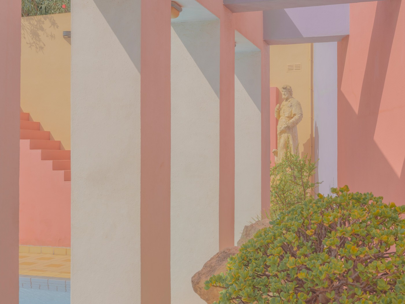 本展では、出来事の記録にとどまらず、世界がどのように視覚的に構成されているかを観察する作品群を展示する。色彩は「場所という経験」を構築する重要な要素として捉えられ、イメージそのもの、そして、その内部に広がる空間を生み出す原動力として提示されている。建築や公共空間、人物といったモチーフは色彩の関係性によって結び付けられ、それぞれの作品の内部に静かな統合がもたらされている。さらに、異なる場所や時間に撮影された写真が対話のなかに置かれる時、色は結節点として機能し、調和や対比を通して距離を越えた響きを生み出す。一見無関係に見える風景は色調によってゆるやかに繋がれ、地理的な隔たりを超えた連続性が静かに浮かび上がる。