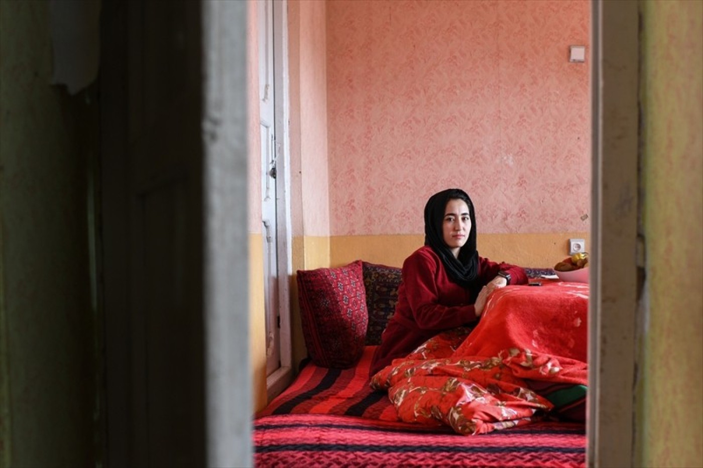 2021年にタリバンが政権を掌握して以降、女性の社会参加は制限され、高等教育も禁止された。唯一例外として認められていた助産教育も2024年末に停止された。- それでも、外の世界でベールに包まれた女性たちの姿とは対照的に、彼女たちが暮らす部屋に足を踏み入れると、壁やクッション、窓辺にまでもが花模様で彩られ、鮮やかな色が広がっていた。2023年、私は北東部バダフシャン州の田舎の村で出会った、ある女性がかつてベッドシーツとして使っていた花柄の布を手にアフガニスタン各地を巡り、女性たちの言葉を記録し、その布を背景に一人一人の肖像を撮影した。