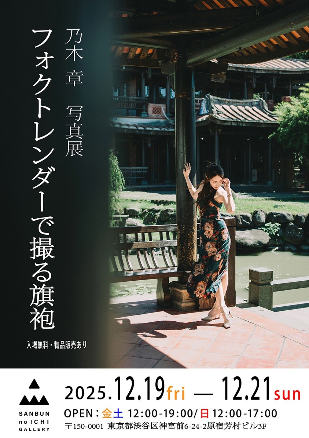 サンブンノイチギャラリーにて、コスプレやポートレート撮影を中心に、日本だけでなく中華圏や東南アジアで活動する乃木章の個展「フォクトレンダーで撮る旗袍」が開催される。