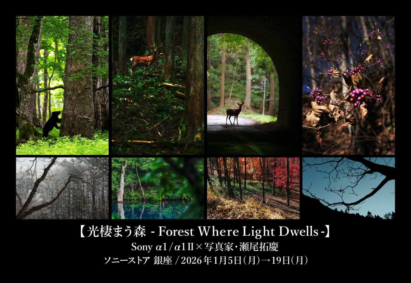 GINZA PLACE 「ソニーストア銀座」4階にて、Sony α1/α1Ⅱ × 写真家・瀬尾拓慶「光棲まう森 - Forest Where Light Dwells -」が開催される。