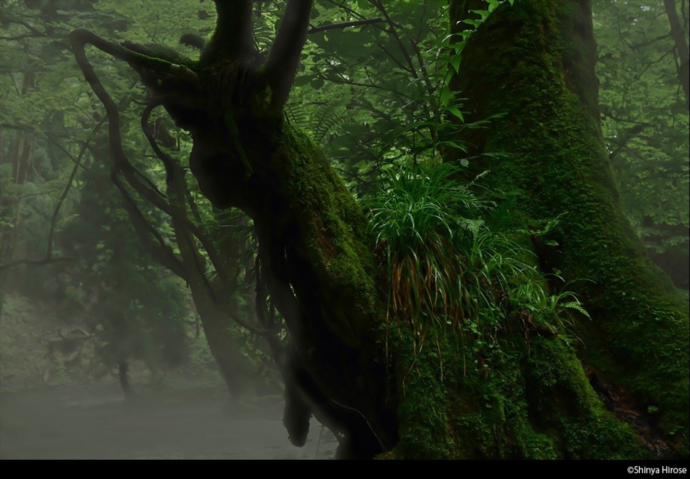 この森は、揚水式発電ダムという巨大開発計画や鹿の食害や楢枯れ病の蔓延など、自然環境の変化を乗り越えて、傷つきながらも今も美しい姿を留めています。私がこの森を初めて訪れたのは、1986年のことでした。その前年に私は日本の原風景を求めるべく、自転車で全国を旅しました。しかしながら当時の日本はすでに各地で開発が進行しており、私が求めていたような風景に出会うことはありませんでした。しかし、翌年に京都府中部にある美山町を訪ねたところ、茅葺き屋根の民家が多数残る農村風景に加え、本当の「森」ともいえる芦生の森に出会うことができました。その後、私はいくつかの海外の国も訪ねましたがそのことがさらに芦生の森の魅力を再認識する結果になり、1995年以降、継続的に芦生の森を写真で記録・表現する活動に傾倒し、さらにはガイドとしても活動することにもつながっていきました。